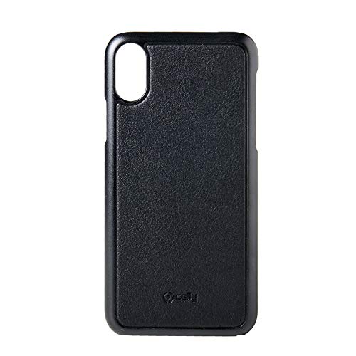 Celly Custodia magnetica per iPhone X / XS, con bordi in policarbonato e texture in finta pelle, colore: nero