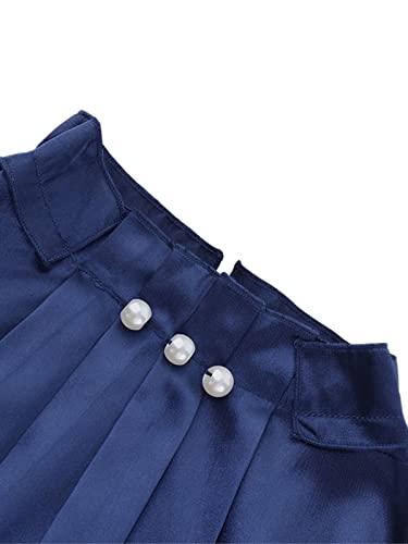Celmia Camicetta Raso Donna Fluido Chiffon Camicetta Donna Chic ed Elegante Camicia Brillante Serata Top Maniche Lunghe, A blu scuro., XL