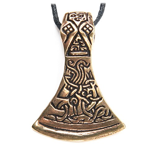Celtica ascia ciondolo in bronzo, con corda di cotone nero, ciondolo, lunghezza totale: 4.5 cm