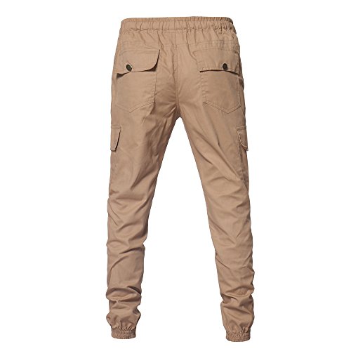 Celucke Pantaloni Cargo Uomo Cintura Elastica in Cotone Lungo da Jogging Pantaloni Sportivi Taglie Forti Pantalone Sportivo da Lavoro con Multi-Tasca (Giallo, XXL)