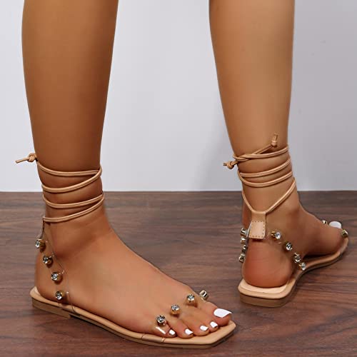 Celucke Piatti Sandali da Donna con Clip Toe, Cinturino da Allacciare lungo la gamba Leggera e Confortevole Moda Sandali da Vacanza al Mare