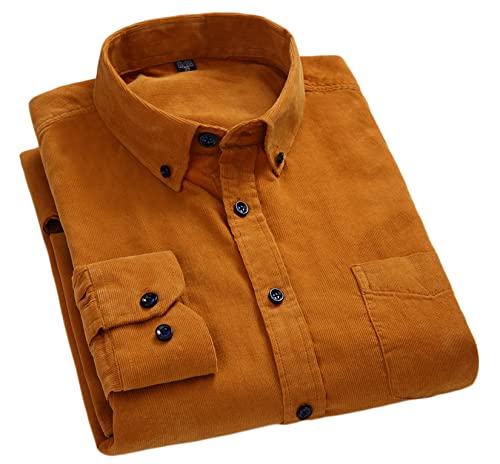 Celupthza Camicia da Uomo in Cotone a Maniche Lunghe in Velluto a Coste, Una Tasca sul Petto, Camicia Primavera Autunno