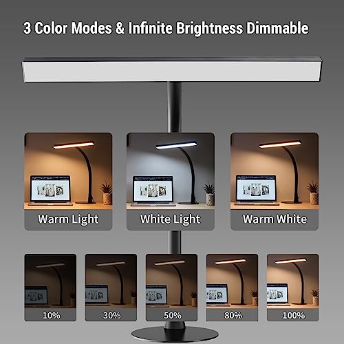 【Luce da scrivania super luminosa e ampia】 Questa lampada da scrivania a led presenta un design elegante e minimalista con una testa in alluminio larga 40cm copre uniformemente l'intero desktop, la lampada da scrivania a efficienza energetica 1000LM fornisce una luce equivalente a una lampadina a incandescenza da 80 W per illuminare il desktop da 120*80cm uniformemente. I LED ad alta efficienza forniscono un'ampia luminosità di 10W per 50.000 ore di utilizzo.