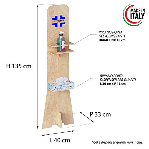 Cemab Cant34tint in legno Colonnina Dispenser Dispenser Supporto per Mano e Guanti, Gel Sanitizing