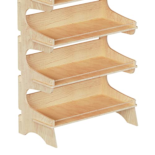 Cemab Trevi, espositore con scaffali in legno 5 piani con bacchette ferma prodotto per negozi con montaggio ad incastro