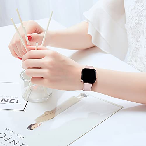 CeMiKa Cinturino in Pelle Compatibile con Fitbit Versa Cinturino/Fitbit Versa 2 Cinturino, Cinturini di Ricambio in Classico Pelle Compatibile con Fitbit Versa/Versa 2/Versa Lite/SE, Rosa/Oro Rosa