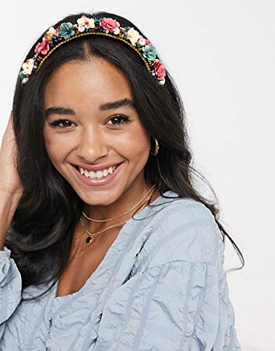 La fascia con strass presenta un fiore in tessuto satinato-jacquard con scintillanti strass color oro e impreziosita da cristalli sfaccettati, perline e perle per assomigliare a fiori fioriti. Indossare questo cerchietto con fiori di cristallo aggiungerà una dose di tocco finale femminile e chic per il tuo look