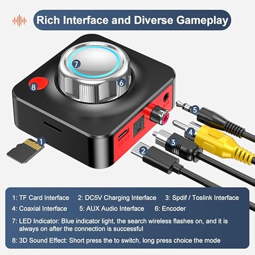 Soddisfa le Tue Diverse Esigenze: con il cavo aux da 3,5 mm, il cavo SPDIF e il cavo coassiale inclusi, questo adattatore audio aux wireless può essere utilizzato su altoparlanti, cuffie, subwoofer e pareti eco. E puoi inserire la scheda TF per riprodurre direttamente la musica della scheda TF. Se si collega un amplificatore SPDIF o Coassiale, selezionare l'SPDIF o Coassiale corrispondente come sorgente di uscita audio, altrimenti l'altoparlante non emetterà alcun suono.
