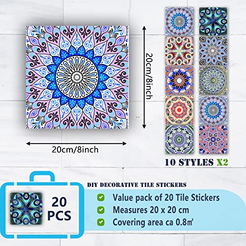 Decorazione DIY- 20 pezzi di adesivi per piastrelle sono inclusi.Ci sono tre taglie tra cui scegliere -10x10/15x15/20x20 cm.Stile retrò e bellissimo motivo di design, permettendoti di personalizzare e progettare completamente la tua superficie nel modo che preferisci.