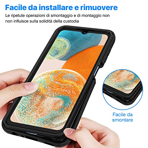 【Protezione dello Schermo integrata】Custodia Samsung Galaxy A23 5G/4G con Protezione dello Schermo Integrata, protegge lo schermo dai graffi senza compromettere la sensibilità dello schermo. La cover posteriore trasparente evidenzia la bellezza originale del cellulare.