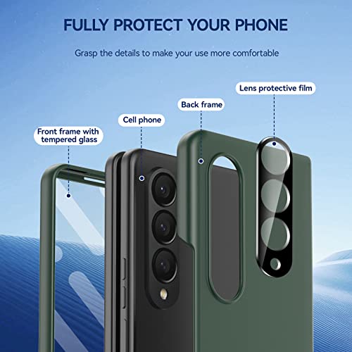 CENMASO per Samsung Galaxy Z Fold 4 Case (2022), Fold 4 Case [Screen Protector] [Camera Lens Protector],Ultra-sottile e leggera Hard PC Anti-Scratch Antiurto Custodia protettiva per Z Fold 4-Green