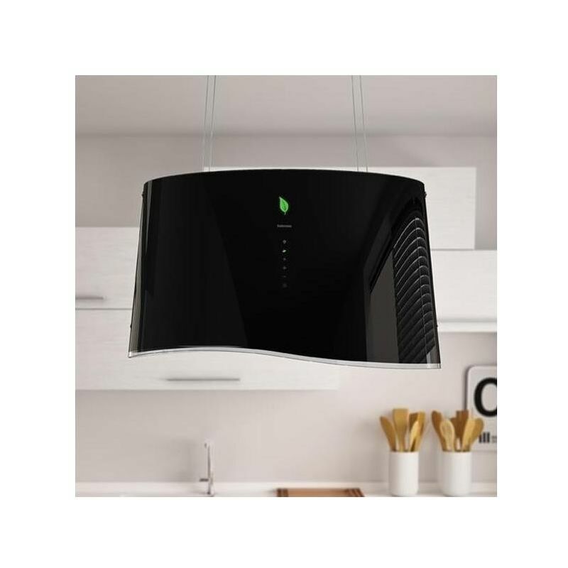 Falmec Mare E.ion. Potenza massima di estrazione: 450 mⁿ/h, Rumorosità (velocità bassa): 56 dB, Rumorosità (velocità alta): 65 dB. Tipo: Cappa aspirante a parete, Colore del prodotto: Nero, Materiale della scocca: Vetro. Potenza motore: 140 W. Larghezza: 660 mm, Profondità: 435 mm, Altezza: 383 mm