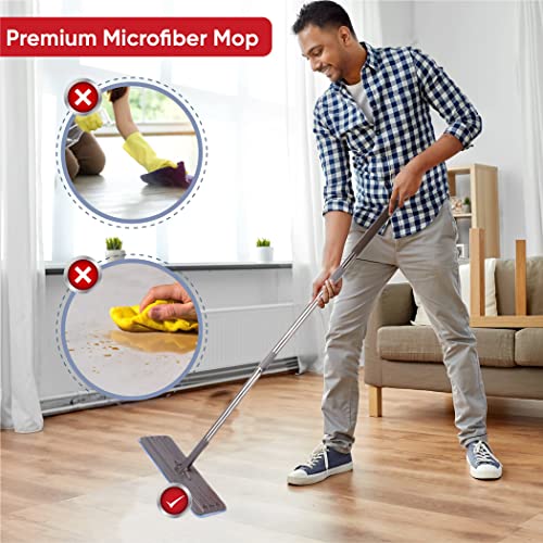 La testa del mop ruota a 360 gradi, rendendo più facile la pulizia. Passa sotto i mobili e in curve strette mentre raccoglie sporco, polvere e sporco ad ogni turno. Il resistente tampone in microfibra è morbido, sottile e liscio. In questo modo puoi proteggere e adattarsi a tutti i tipi di pavimento senza lasciare segni o graffi. Questo tampone assorbe anche più acqua rispetto alla solita testa mop, difficile da modellare e completamente lavabile in lavatrice