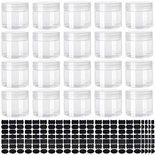 CENRONG Barattoli in plastica trasparente,20 Pcs Barattoli Contenitori in Plastica Trasparente Pet con tappo a vite in alluminio,Contiene 10 etichette e adesivi per Cosmetici,Snack di Cibo Secco