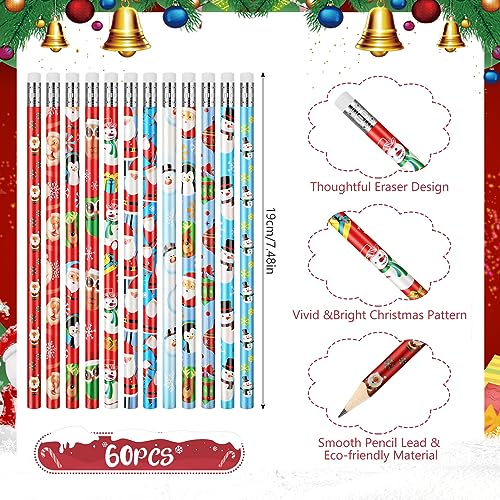 Pacchetto Festival: con un'impressionante collezione di 60 matite di Natale con gomma che trasportano 12 diversi amati stili natalizi tra cui adorabile Babbo Natale, pupazzo di neve, renna, albero di Natale e altro ancora, queste matite sono l'epitome del divertimento festivo;