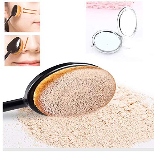 ✿ Set di applicatori per fondotinta: viene fornito con 2 pennelli per fondotinta Kabuki con custodia, 1 pennello ovale a manico lungo e uno specchio compatto per il trucco da viaggio;