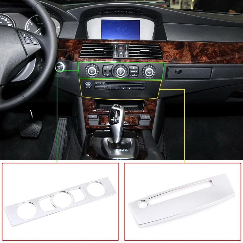 LHD Car Center Console Air Conditioner CD Volume Panel Decorative Cover ABS For BMW 5 Series E60 2004-10 Interior Accessories