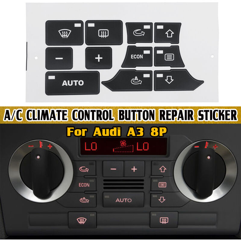 Il pacchetto include: 1/2pcs adesivo di riparazione del pulsante del climatizzatore Montaggio: Per Audi A3 8P Specifiche: -Tipo: un adesivo di riparazione del pulsante/C -Colore: nero opaco Caratteristica: -Un set di adesivi per riparare i pulsanti dell'unità AC. Realizzato in vinile opaco fustellato, puoi sostituire il bell'aspetto che aveva quando era nuovo. -Per Audi A3 8P. - Si noti che la forma e le dimensioni delle lettere e dei disegni non corrispondono esattamente agli originali. Il prodotto serve a riparare l'usura dei bottoni originali. -La dimensione dell'adesivo è leggermente più piccola, non c'è rischio che i bordi si stacchino. -I simboli e le lettere sono tagliati in modo che la luce del cartello possa attraversarlo. Nota: - Si prega di considerare una differenza di 1-3 cm a causa della misurazione manuale. - A causa del diverso display e della luce diversa, l'immagine potrebbe non riflettere il colore effettivo dell'articolo. Grazie per la comprensione.