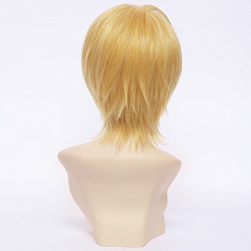30 Centimetri Bionda Piena Cosplay Parrucca In Costume Giallo Dorato Dritto Breve Sintetico