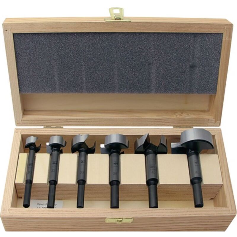 Set di frese forestali con Wave Polish-Cutter SP Di a4 7483 G Punta di centraggio 2 tagli principali Taglio Paneripherite con taglio onda Albero cilindrico privato Minore sviluppo della temperatura e alta vita Per forature, per foratura periferica e per foratura in diagonale in morbida e in legno: in cassetta di legno.Contenuto del set: (15.) 20 25 30 35mm