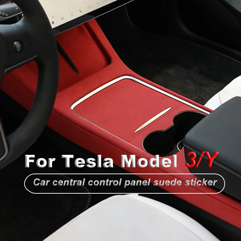 Car Central Control Suede Sticker For Tesla Model 3 / Model Y 2021 Car Accessories Interior Modification Interior Parts Patch