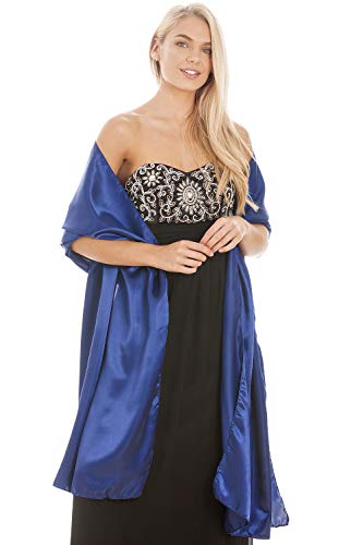 Central Chic Stola in raso setoso per matrimonio, scialle pashmina sciarpa da sposa, damigelle, feste, 2 taglie S-M L-XL, blu navy, S-M