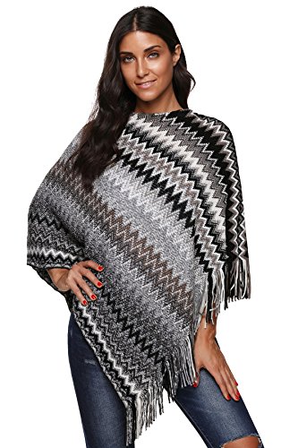 Centrawin, poncho da donna a pipistrello, con nappe a maglia multicolor