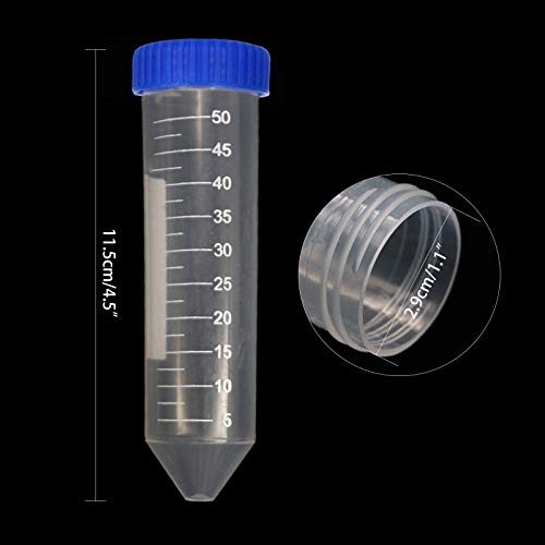 Tubi per Centrifuga in Conici, Provette Plastica con Tappo a Vite, Laboratorio Provetta Trasparente Graduata (50PCS / 50ml)