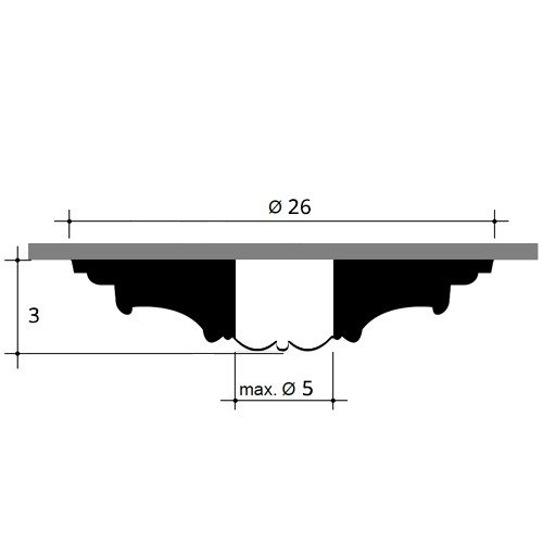 Dimensioni:Diamentro: 26 cm, Altezza: 3 cm, max. Diamentro di perforazione: 5 cm