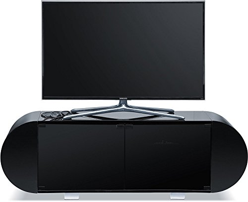 Centurion Supports, Andora, mobiletto porta TV morbido a schermo piatto da 26 a 60 pollici, ovale, con sistema BeamThru per il telecomando, colore nero lucido