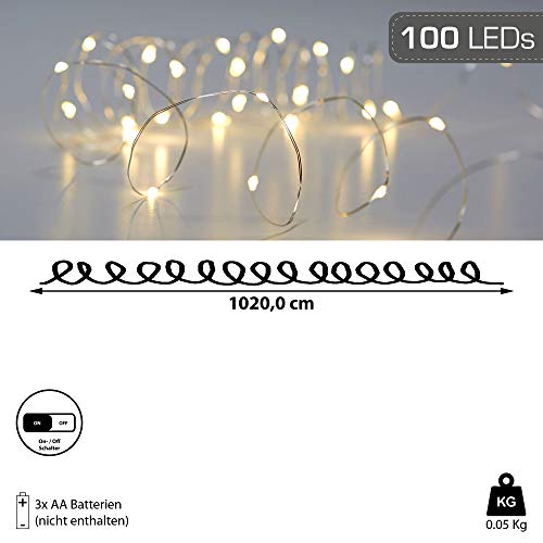 Cepewa 100 luci a LED micro set da 3 pezzi, 1000 cm, luce bianca calda (3 x 100 LED micro catena di luci)