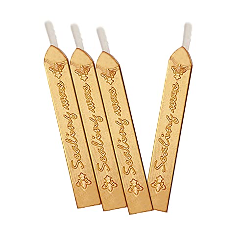 Ceralacca Oro,Cera Lacca,Bastoncini di Ceralacca con Stoppini,per Antichi Manoscritti,Sigillo di Cera Timbro,per Busta,Biglietti,D'Invito,Decorazione Regalo (4 Pezzi,Oro)