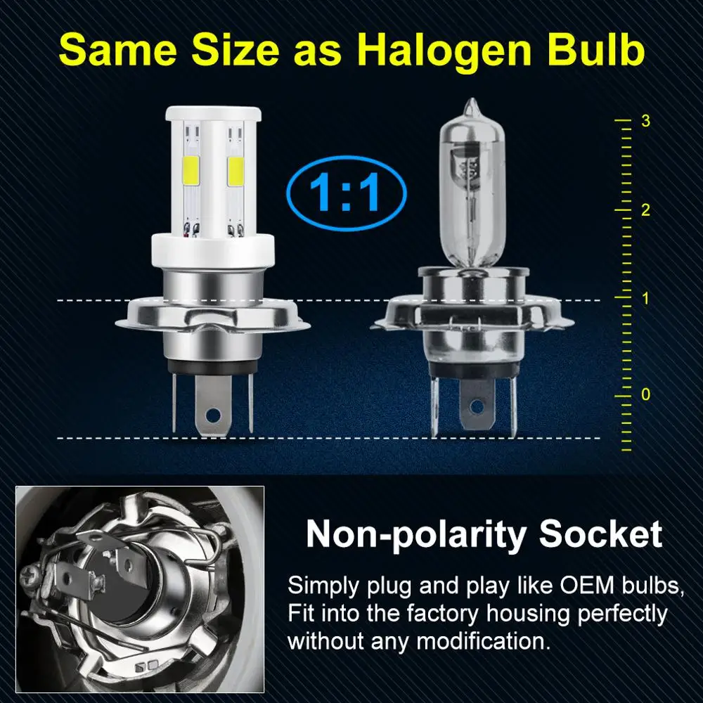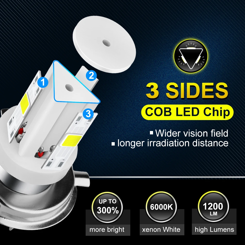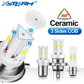 Ceramic LED H6 BA20D P15D H4 Led Motorcycle Headlight Bulbs 3 Sides COB Moto Lights High Low Beam Motorbike Accessories 12V 24V