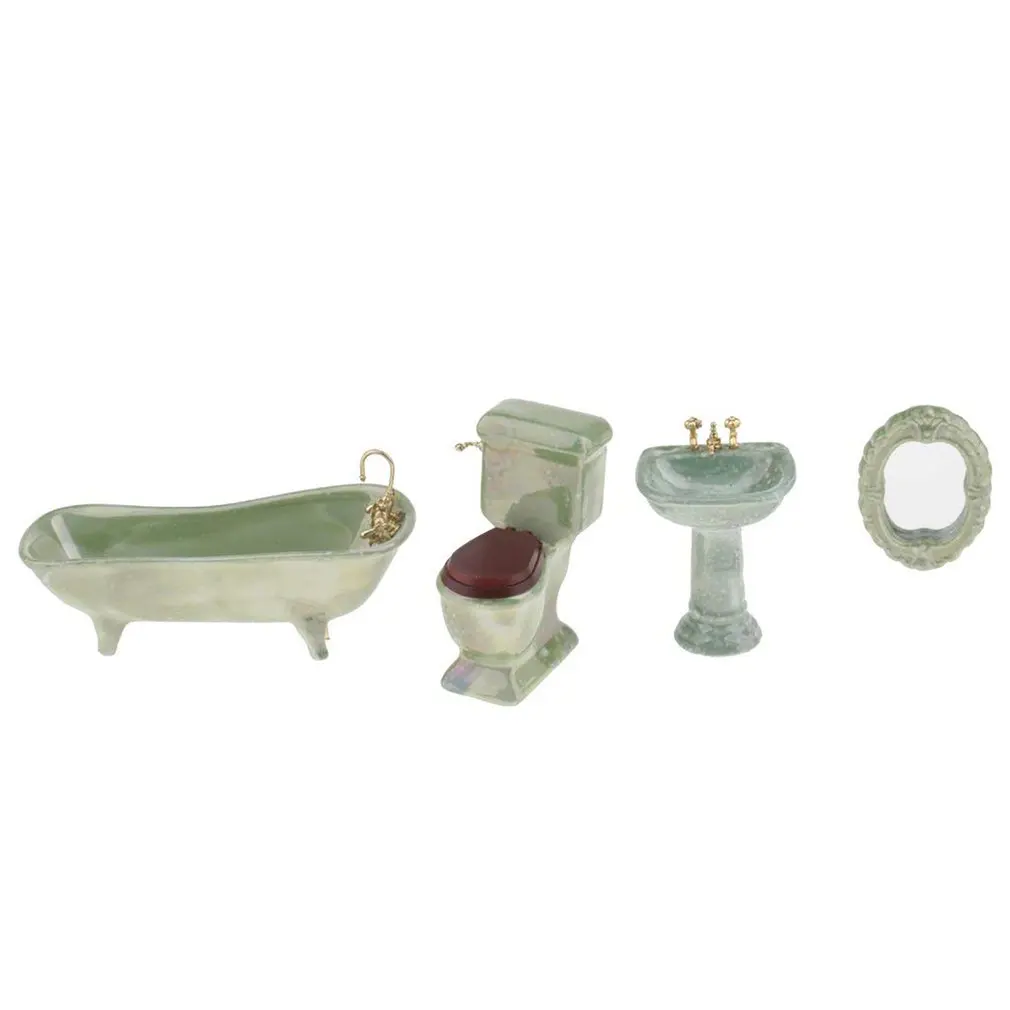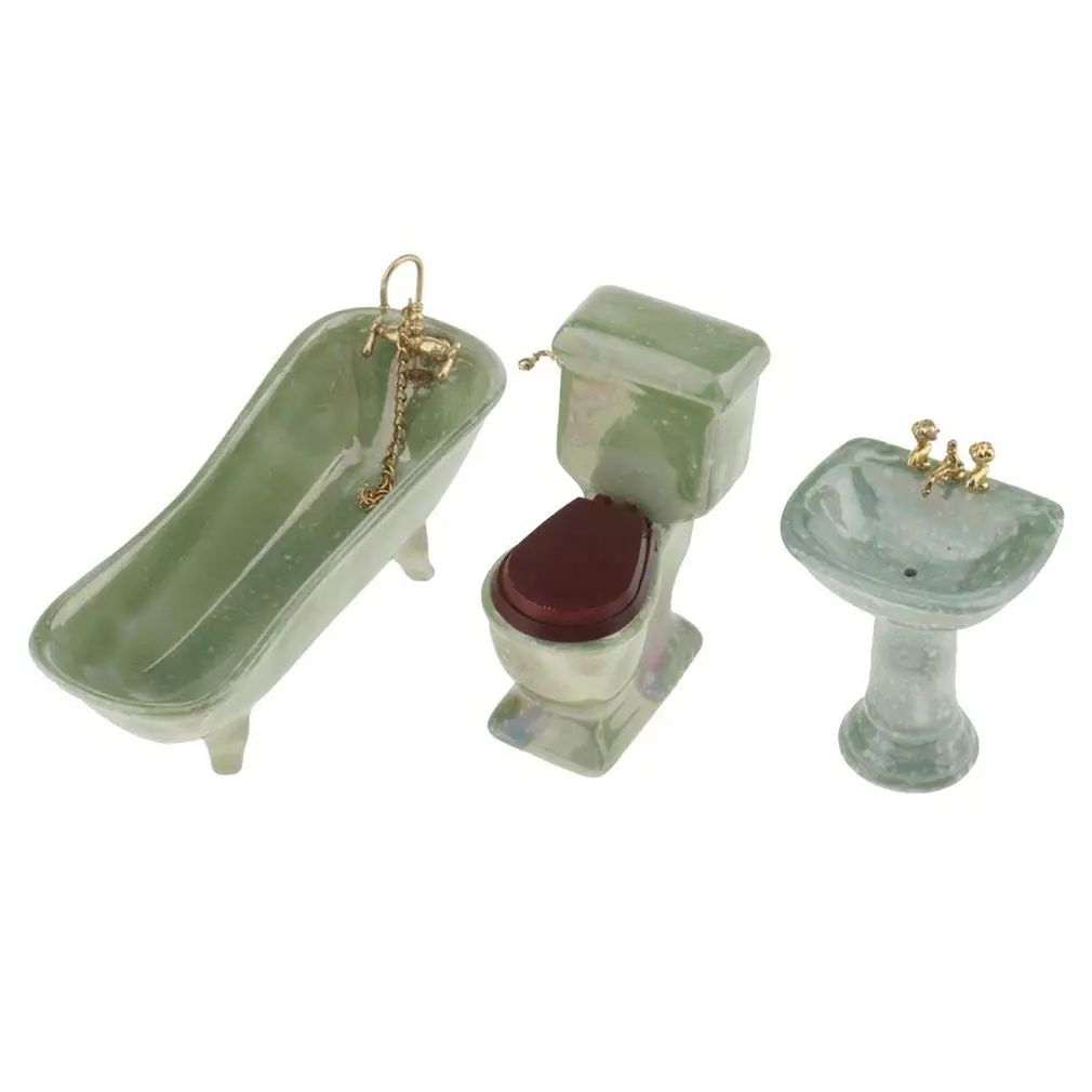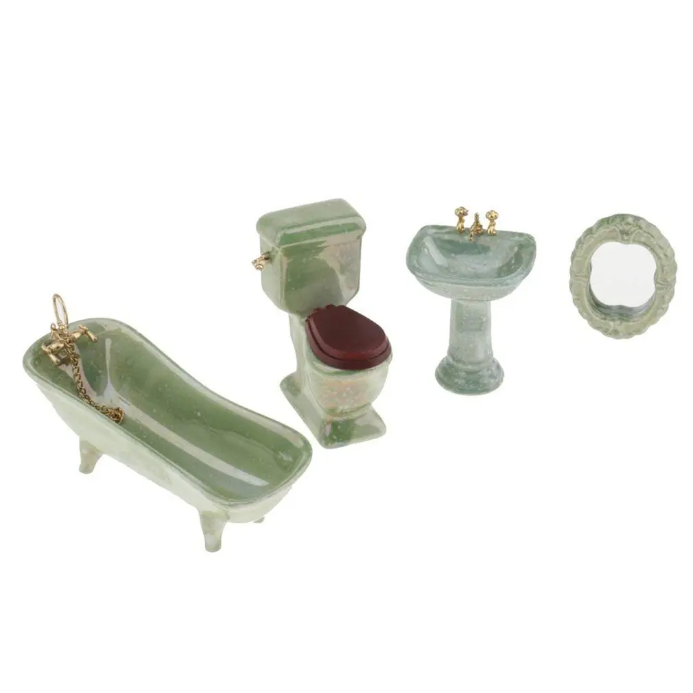 Mini Ceramic Bathroom Footed Bath Tub ToiletPedestal Sink & Mirror Set Green