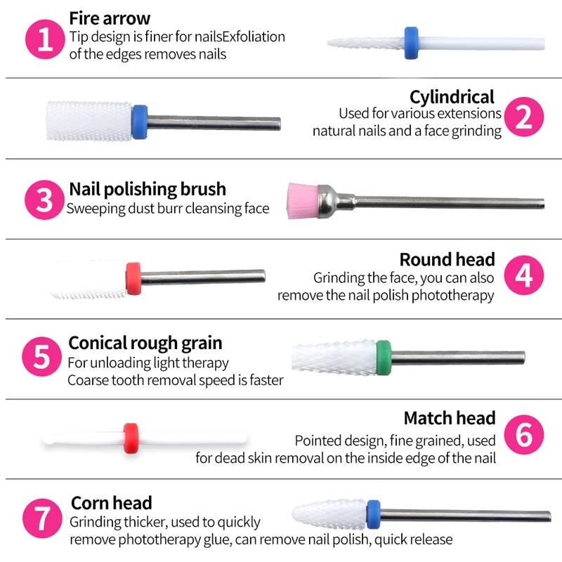 Ceramic Nail Drill Bit Set Diamond Milling Cutter Rotary Burr Bits Electric Machine for Manicure Accessories Nail Files Art Tool
