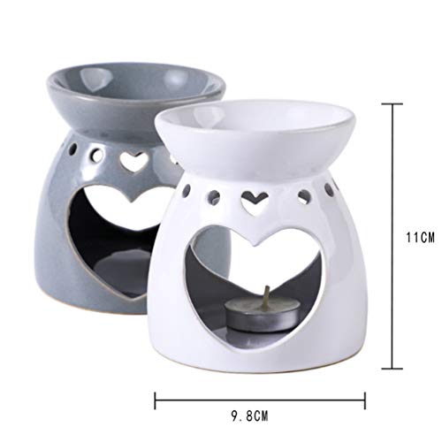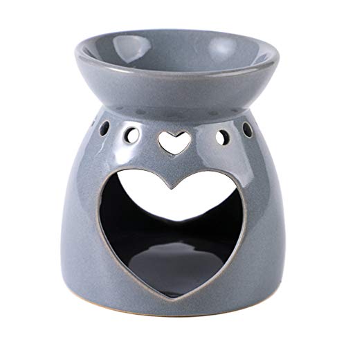Grey Ceramic Tealight Candle Holder Oil Burner Essential Oil Incense Aroma Diffuser Wax Tart Burner Heart Shaped Tea Light Holder for Aromatherapy Spa Yoga