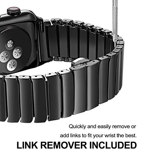 Ceramica Braccialetto Compatibile con Cinturino Apple Watch 38Mm 40Mm 42Mm 44Mm Regolabile Cinturino Cinturino Uomo e Donn Compatibile per Iwatch SE/6/5/4/3/2/1,Nero,42/44mm