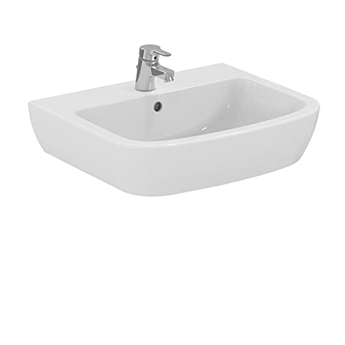 Lavabo 600x495 mm con foro centrale per la rubinetteria aperto.