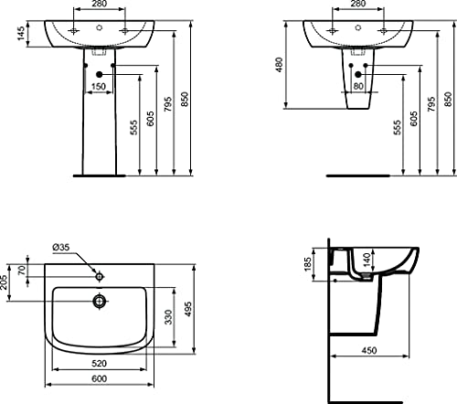 Può essere abbinato alla colonna, alla semicolonna o al sifone d'arredo J3747AA.