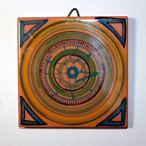 Geometrica-Mattonella di ceramica fatta a mano,dimensioni cm 10x10x0,8 cm,pronta per essere appesa alla parete.Made in Italy,toscana,Lucca.Creata da Davide Pacini.