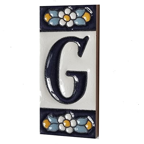 Ceramica Casa Piastrelle Numeri & Lettere, Blu Disegno Floreale, Piastrelle Dimensioni: 7.5cm x 3.5cm (Lettera A)