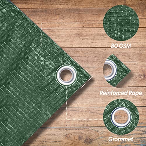 Telo di tela cerata verde, 2,4 m x 3 m, leggero, in plastica PE, 80 g/m², impermeabile, multiuso, per mobili da giardino, capannoni, campeggio (2,4 m x 3 m)