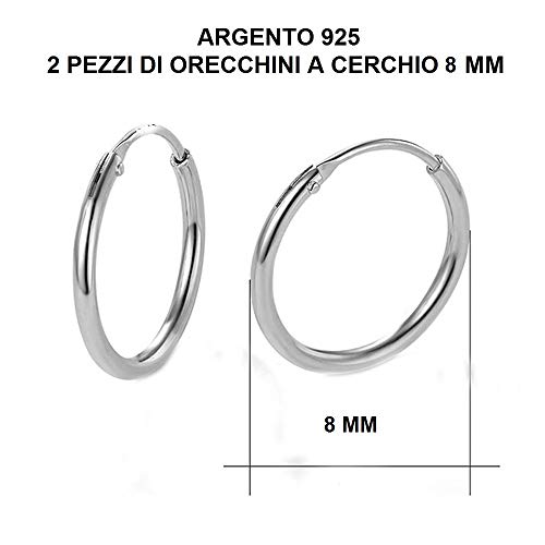 Cerchi in Argento Sterling 925 Con Gancetto-Orecchini Creoli Sleeper A Cerchio- Diametro: (8 MM)
