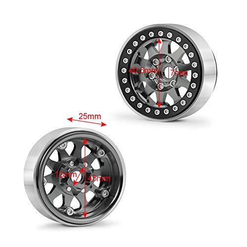 Set di 4 cerchi in metallo per 1/10 RC Crawler Axial SCX10 SCX10 II 90046 SCX10 III AXI03007 TRX4 D90 (titanio e nero)