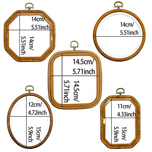 Set di telai da ricamo: questo set include 5 telai da ricamo in plastica imitazione legno più 16 aghi da cucito dorati. Ogni dimensione corrisponde a una forma, sono cerchio, ovale, rettangolo, ottagono, quadrato. Cinque stili diversi per soddisfare ogni tua esigenza.