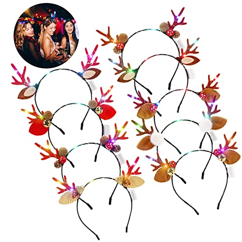 Cerchietti Natale LED: 9 Pcs Fascia luminoso Renne Mollette Capelli Comodo e Riutilizzabile Adatto per Decorazioni Natalizie Accessori di Compleanno e Regali per le Feste per Adulti e Bambini