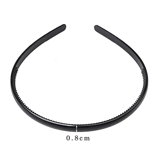 Dimensioni: La confezione contiene 6 cerchietti capelli in plastica nera con uno spessore di 8 mm e una circonferenza di 36 cm, adatti alla maggior parte delle circonferenze della testa.