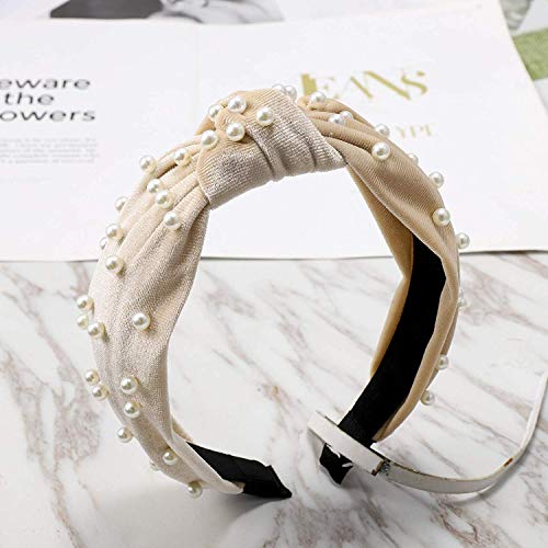 Cerchietto per capelli da donna, con perle intrecciate, in velluto sintetico, annodato, per donne