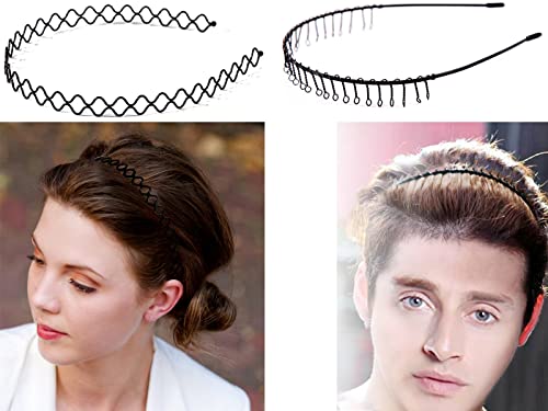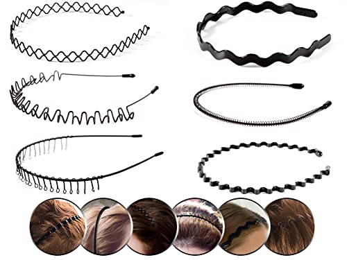 Cerchietto Capelli Donna Uomo 6 Pezzi Headband Zazzy Bandz Elastico Cerchietto Zig Zag per Capelli Metallo per Yoga Sport Bagno, Multistile,Unisex,Nera