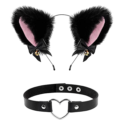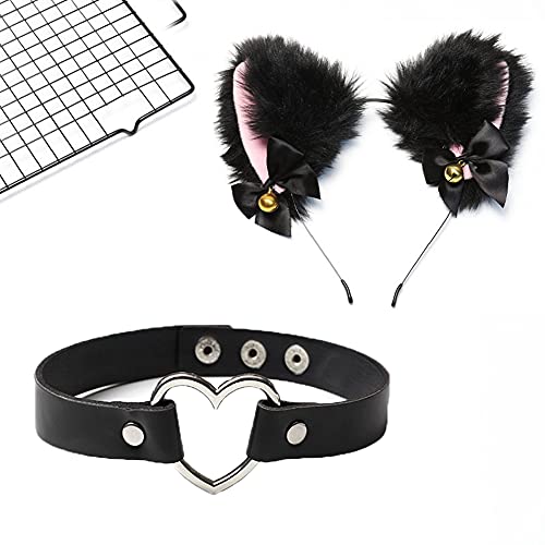Cerchietto per capelli con orecchie di gatto, cerchietto per capelli con collana girocollo per donne e ragazze, accessori per capelli, costume per feste e decorazioni quotidiane